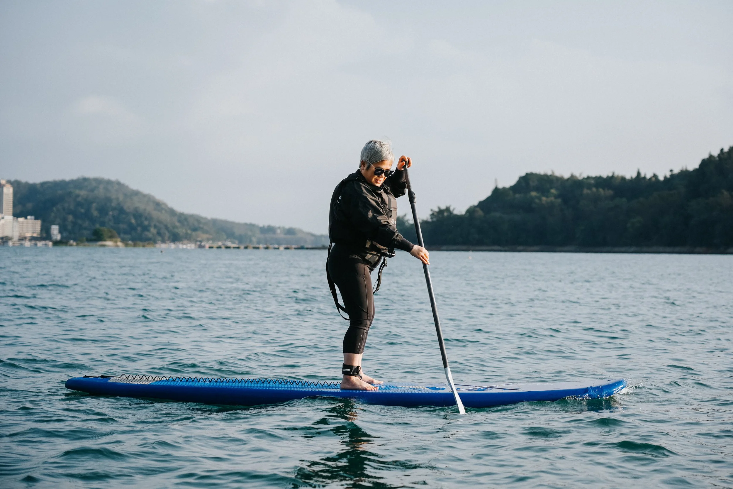 準備完成後,我們會一起下水,從最基礎的練習開始,慢慢熟悉划行的節奏、身體的平衡,以及在湖面上自由移動的感覺。