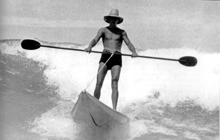 現代 SUP 的雛形公認源自 20 世紀 40 至 60 年代的夏威夷威基基海灘(Waikiki)。當時著名的 "Waikiki Beach Boys"(如 Duke Kahanamoku 與 AhChoy 家族)為了指導遊客衝浪,站立在長板上以獲得更好的視角來觀察海浪的動向,並利用單槳移動。這種方式當時被稱為 "Beach Boy Surfing"。